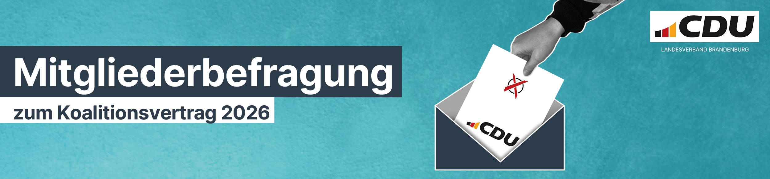 Nach intensiven Koalitionsverhandlungen steht die CDU Brandenburg vor einer grundlegenden Entscheidung: Soll unsere Partei in eine Koalition mit der SPD eintreten? Der Landesvorstand hat daher beschlossen, die Mitglieder unmittelbar zu beteiligen – im Rahmen einer Mitgliederbefragung.
